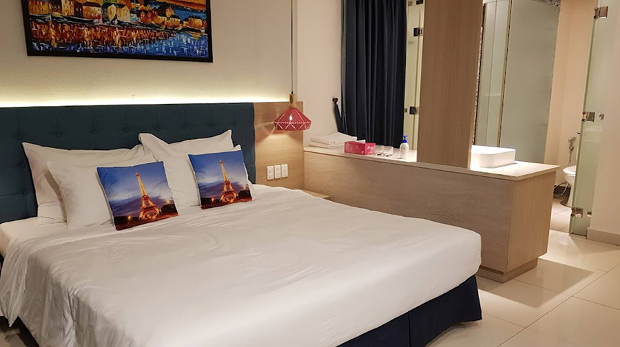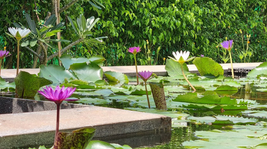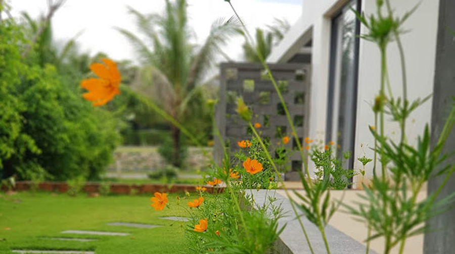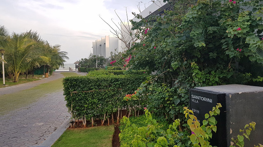 - Mặt trước trực diện công viên trung tâm, đi qua hàng dừa là đến Hồ bơi